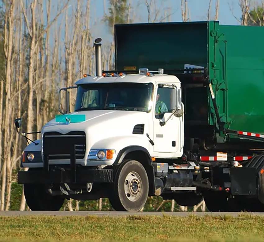 Get quick and affordable junk removal in Clifton, NJ. Our team handles everything from furniture to debris, helping you clear out clutter fast and efficiently. A white garbage truck is driving down the road next to a green garbage truck.